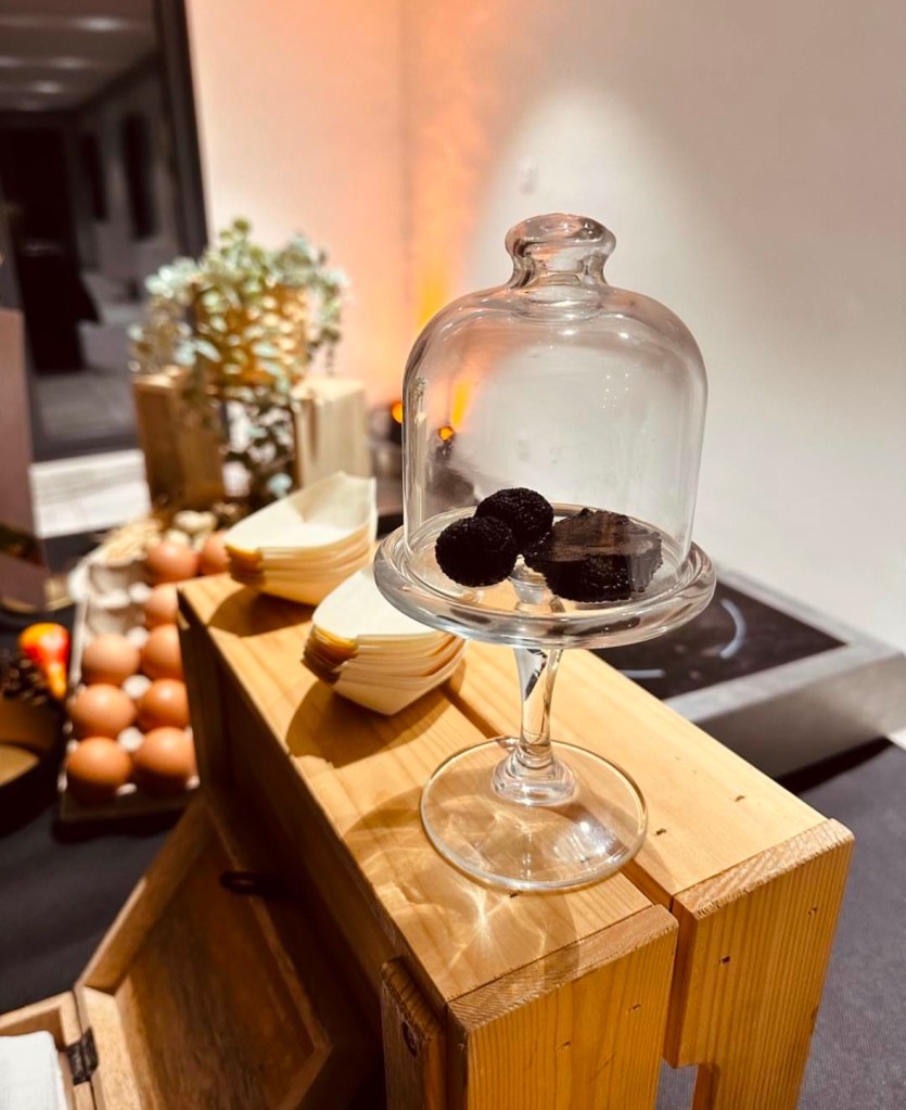 Brouillade d’Oeuf d’autruche à la Truffe & Œuf de caille au plat.