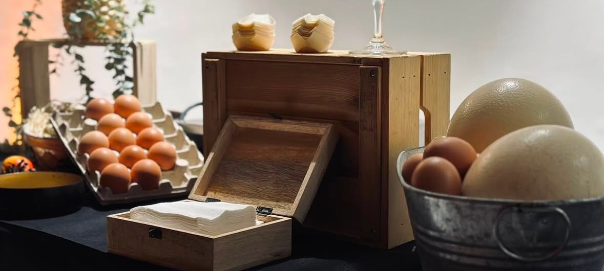 Brouillade d’Oeuf d’autruche à la Truffe & Œuf de caille au plat.